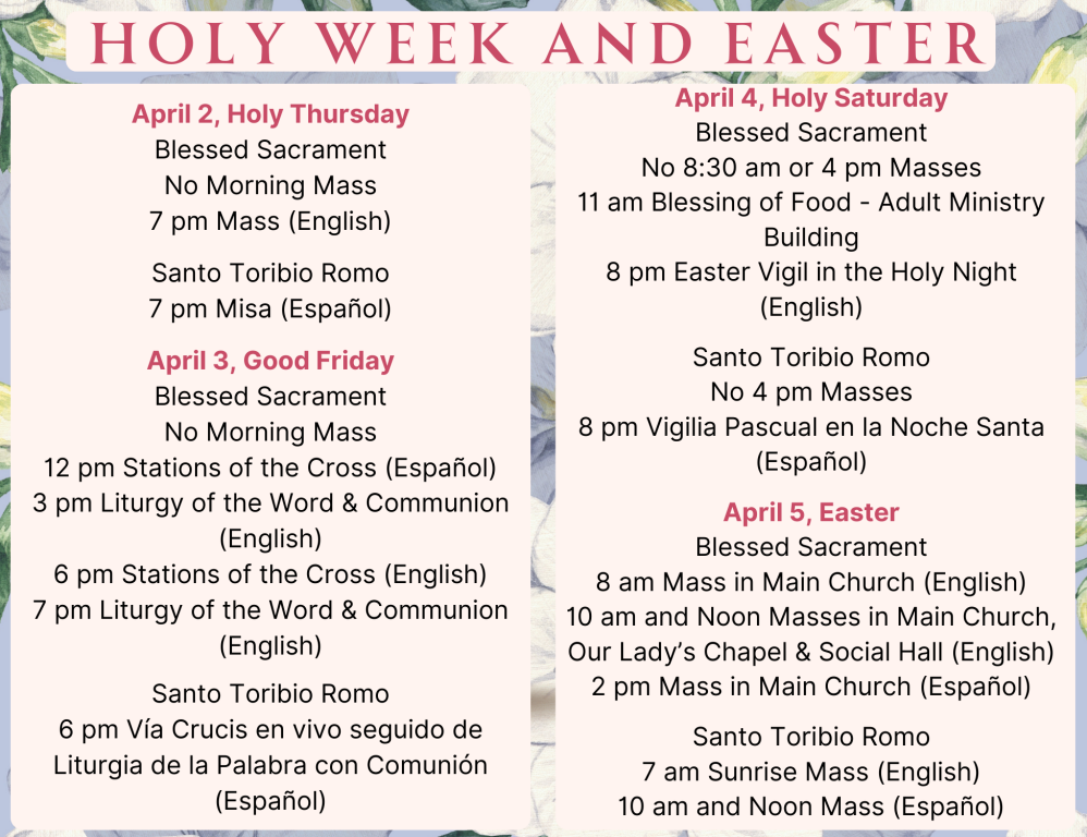 Domingo 8:00 am, 10:00 am, 12:00 pm